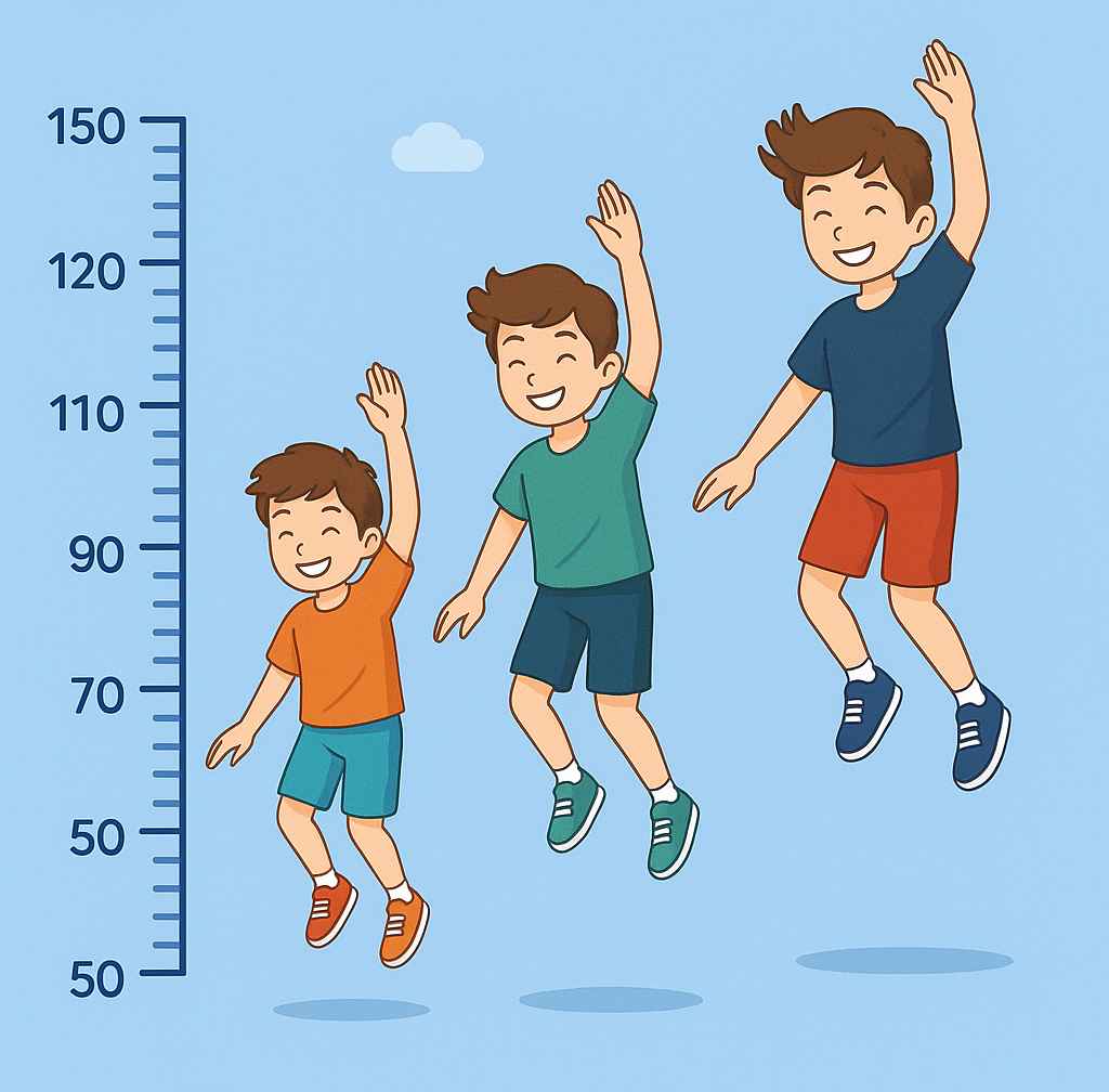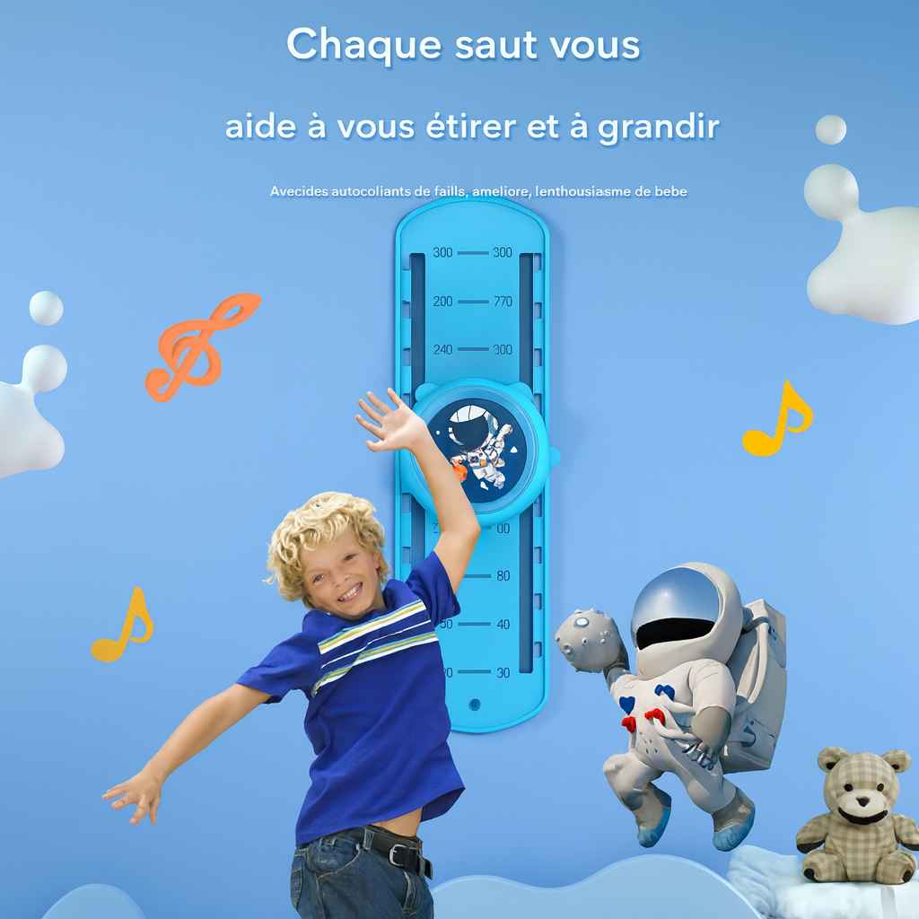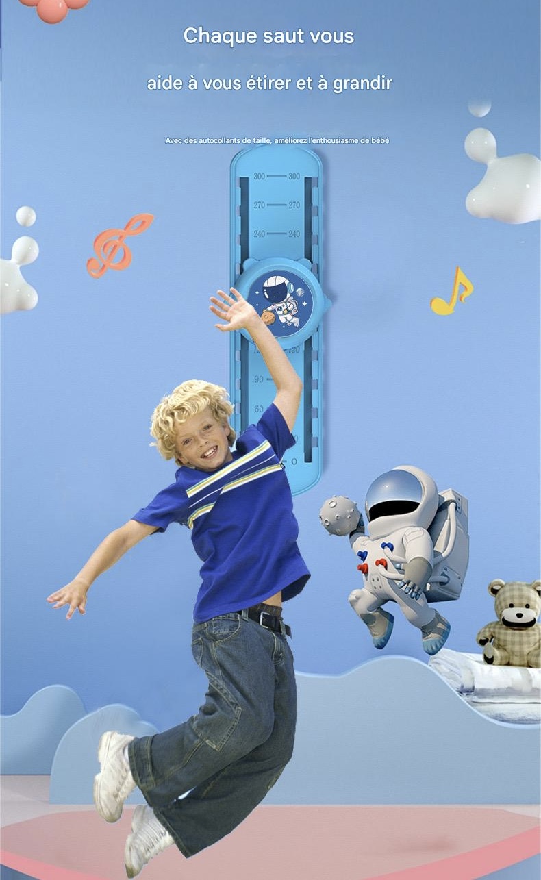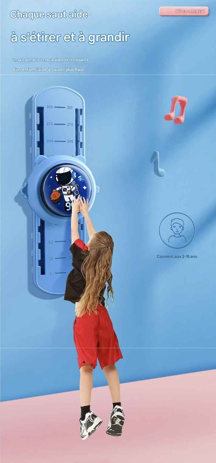 Des études médicales montrent que les exercices d’étirement et les activités physiques comme le saut stimulent la sécrétion d’hormone de croissance (GH), essentielle pour le développement de la taille et des os. En encourageant les enfants à sauter régulièrement, ce panneau :