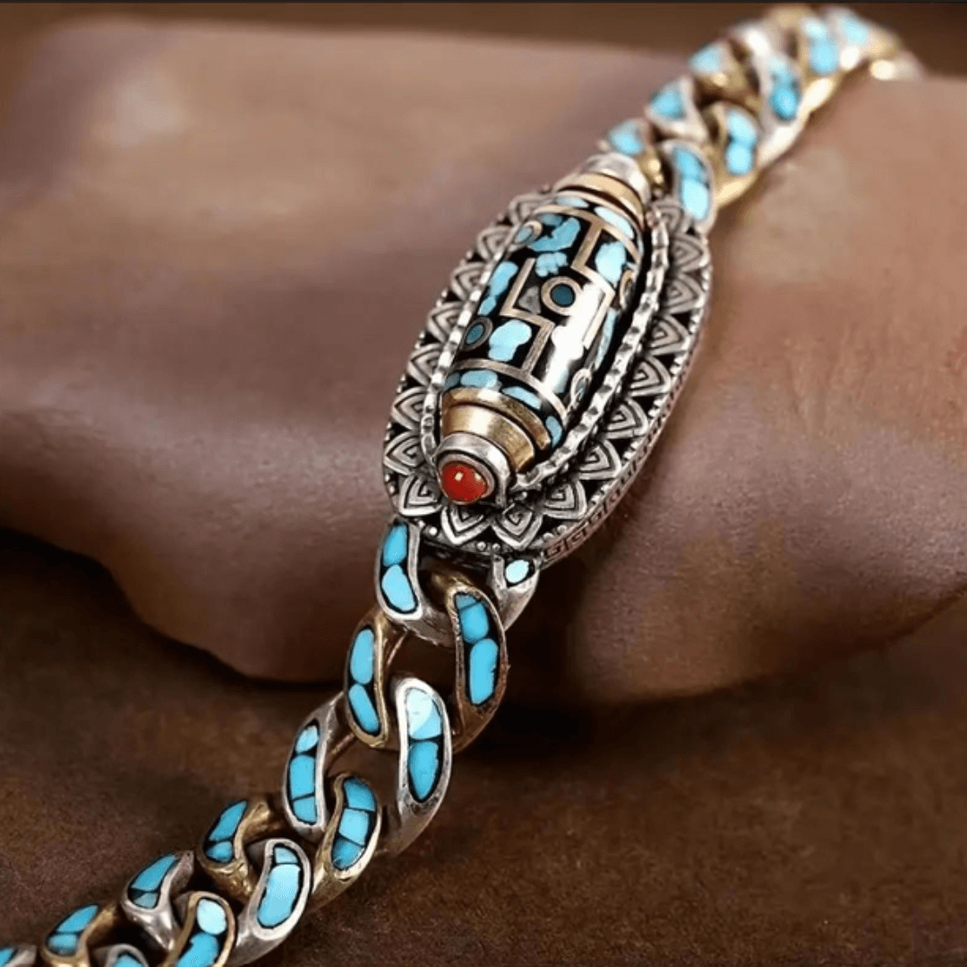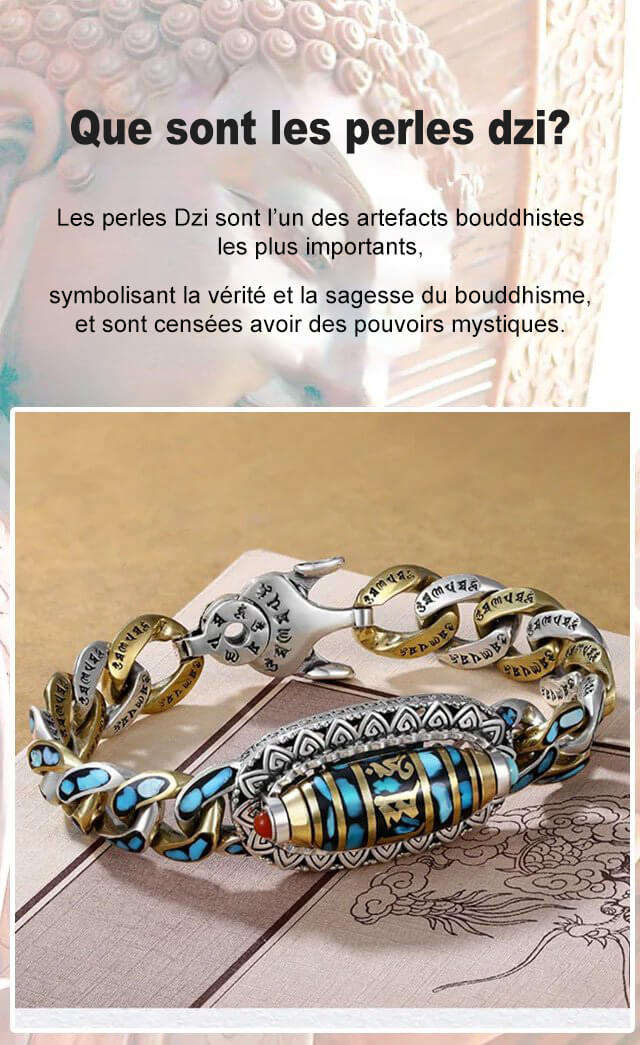 Portez un symbole tibétain réputé pour protéger, attirer la chance et clarifier l’esprit. Le Bracelet Dzi 9 Yeux™ associe une perle Dzi à neuf yeux et de la turquoise, avec le mantra à six syllabes gravé, pour un bijou à la fois spirituel et élégant.