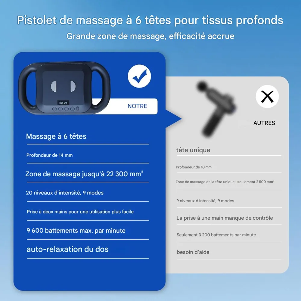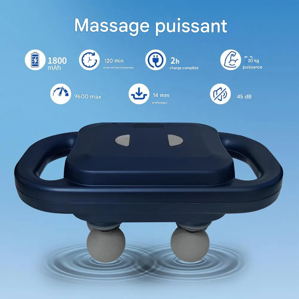 Découvrez le MassageMaster™, votre allié bien-être au quotidien. Grâce à sa technologie de massage par pression profonde, il détend les muscles, soulage les douleurs lombaires, cervicales et articulaires, et stimule la récupération après l’effort.