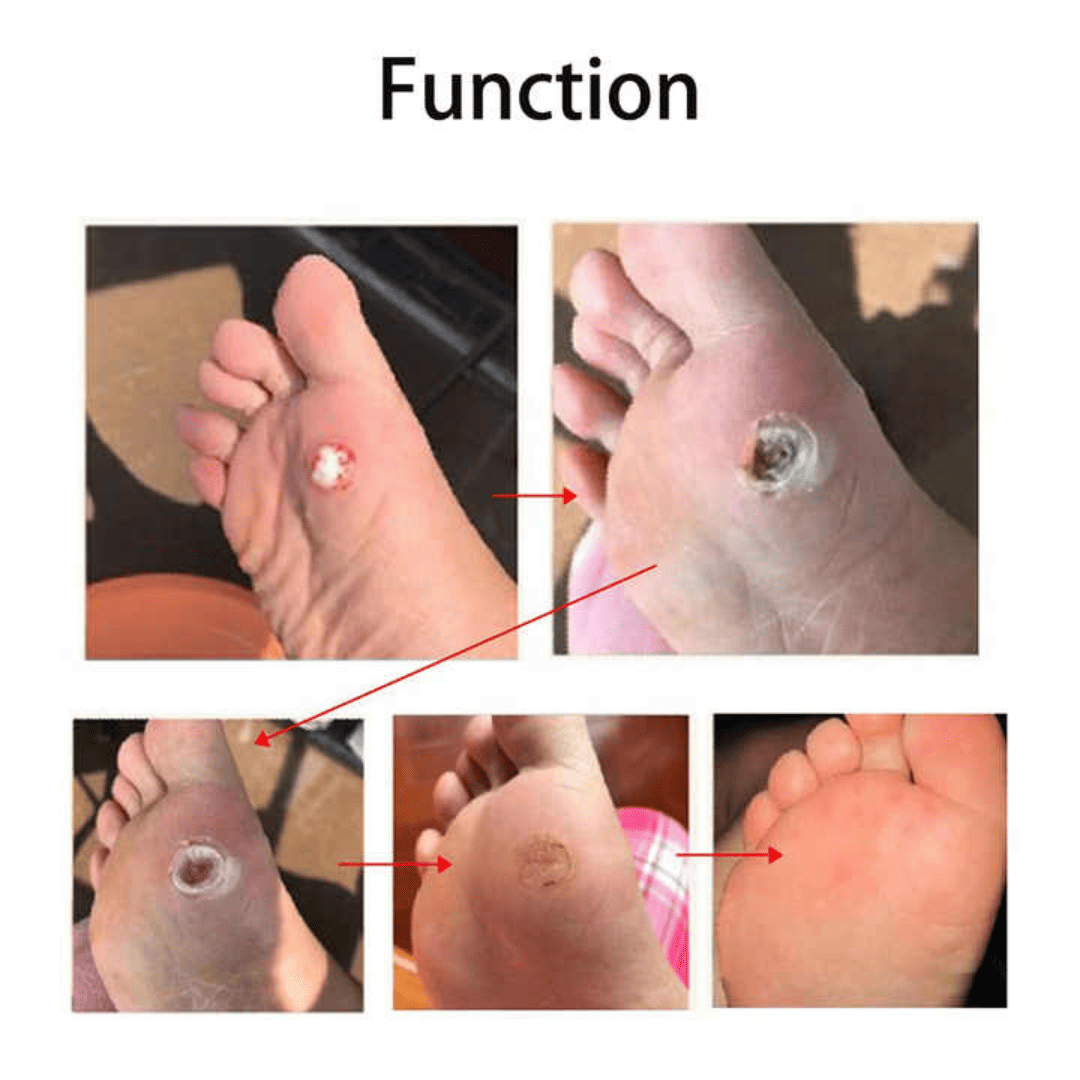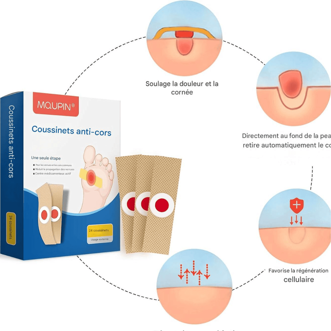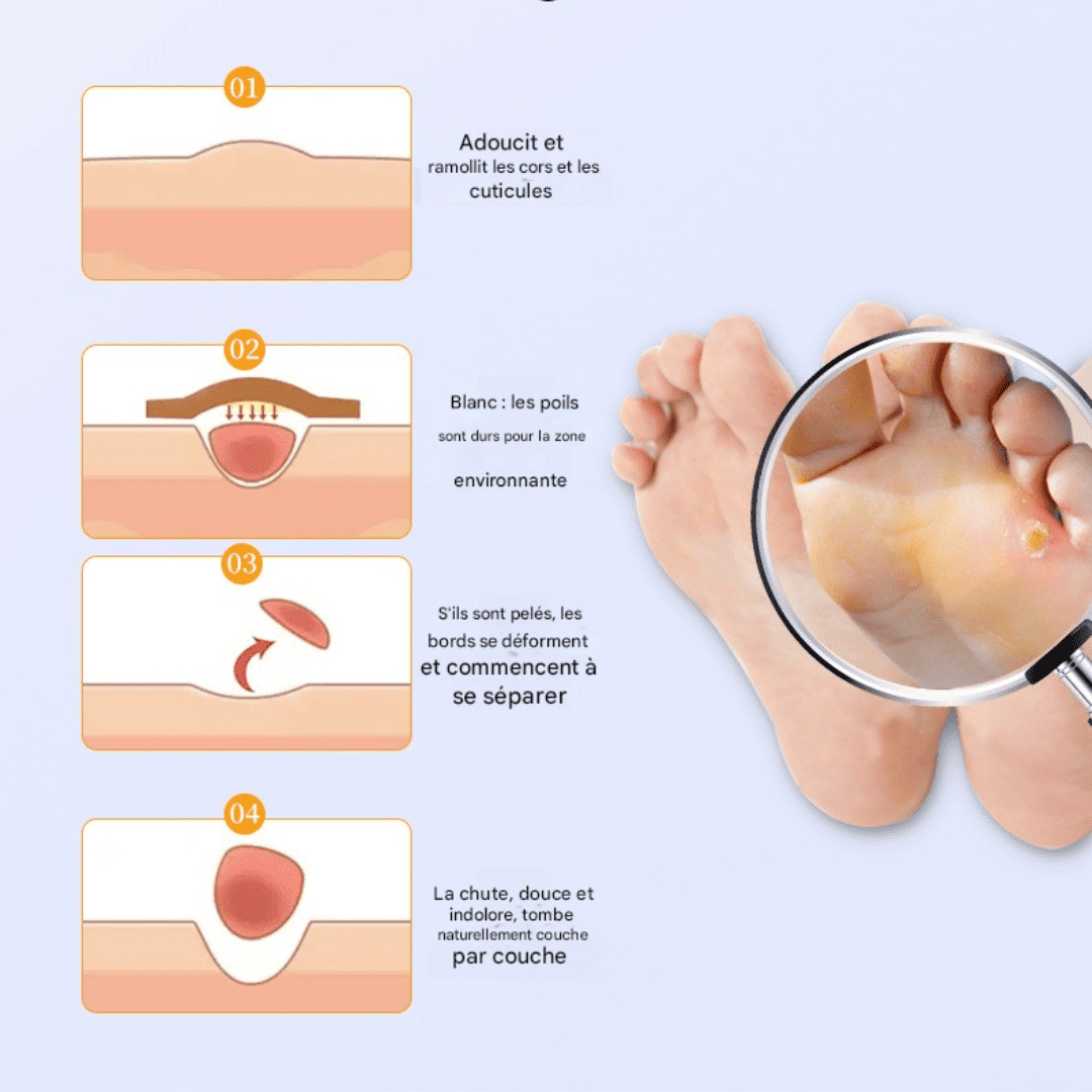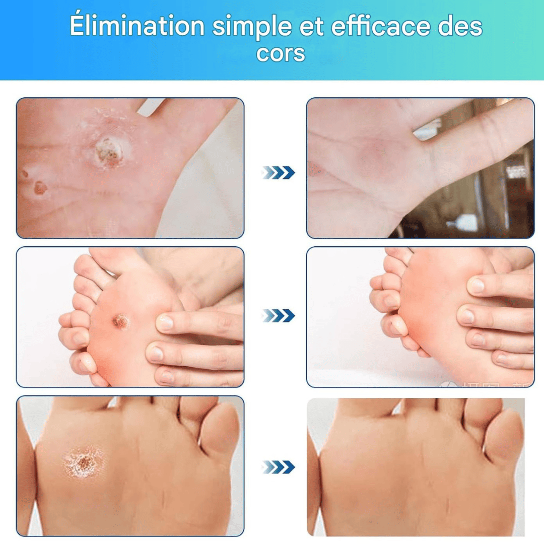 -Élimination Ciblée et Puissante : Le centre médicamenteux agit directement sur le cor ou la verrue.
